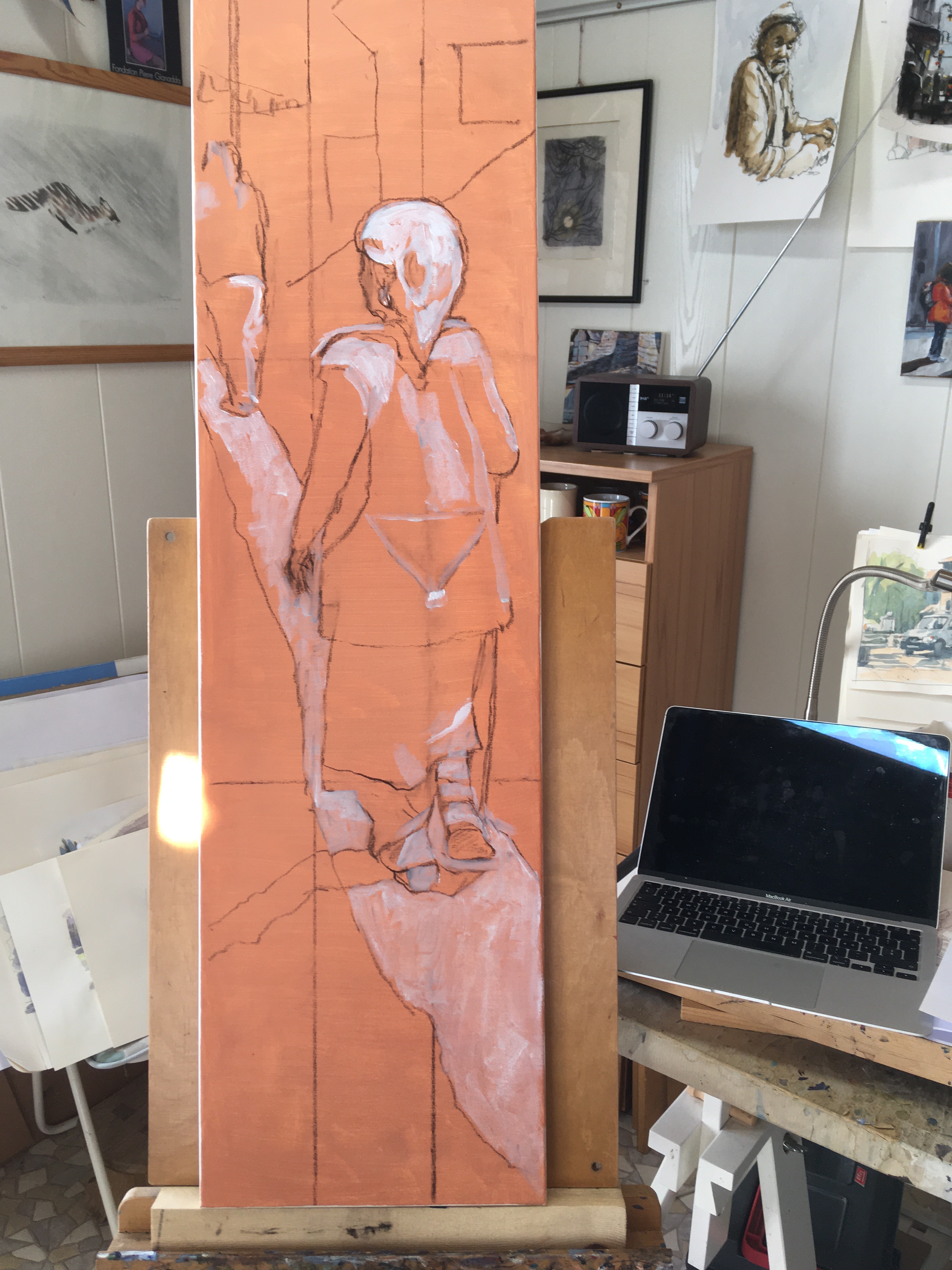 Je me demandais dans quelle direction aller. Mais j'avais l'impression que le sujet de cette toile, une Népalaise sur le chemin du dispensaire, avait déjà tout dit. C'était aussi l'avis de la commanditaire. Moins c'est bien parfois. Je dois encore apprendre ce genre d'audace! I was wondering which way to go. At the same time I had the feeling that the subject of this canval, a Nepalese woman on the way to the dispensary, had finished telling what she wanted. That was also the person who gaves me the order's feeling. Less is beautiful sometimes. I still have to learn to be audacious that sort!